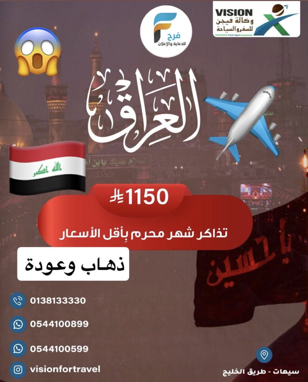 1150 ريال تبدأ تذاكر ورحلات وكالة فيجن للسفر والسياحة / العراق 28 يونيو، 2025 5 للحجز والإستفسار :- 054410059901381333300544100899 انستقرام www.instagram.com أشترك معنا في خدمة فرح : Enter the text or HTML code here شارك هذا الموضوع: النقر للمشاركة على X (فتح في نافذة جديدة) X انقر للمشاركة على فيسبوك (فتح في نافذة جديدة) فيس بوك معجب بهذه:إعجاب تحميل... مرتبط