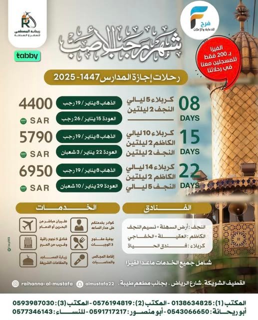 200 ريال فقط الفيزا رحلات وكالة سفراء ريحانة إجازة منتصف العام / العراق