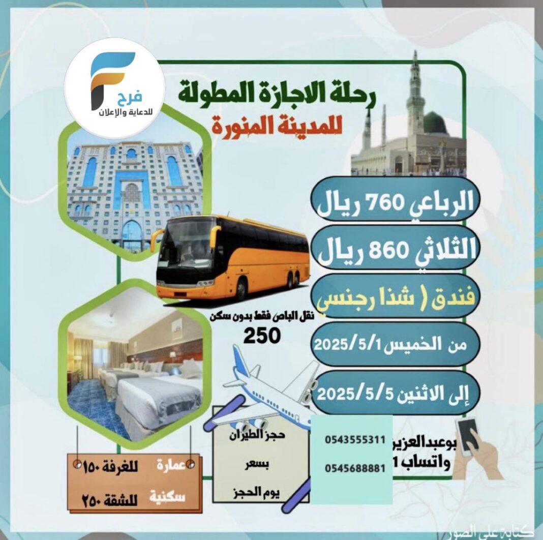 150 ريال تبدأ رحلات حملة غدير الابرار الاجازة المطولة / المدينة المنورة 24 أبريل، 2025 2 للحجز والاستفسار : 0543555311 0545688881 أشترك معنا في خدمة فرح : Enter the text or HTML code here شارك هذا الموضوع: النقر للمشاركة على X (فتح في نافذة جديدة) X انقر للمشاركة على فيسبوك (فتح في نافذة جديدة) فيس بوك معجب بهذه:إعجاب تحميل... مرتبط